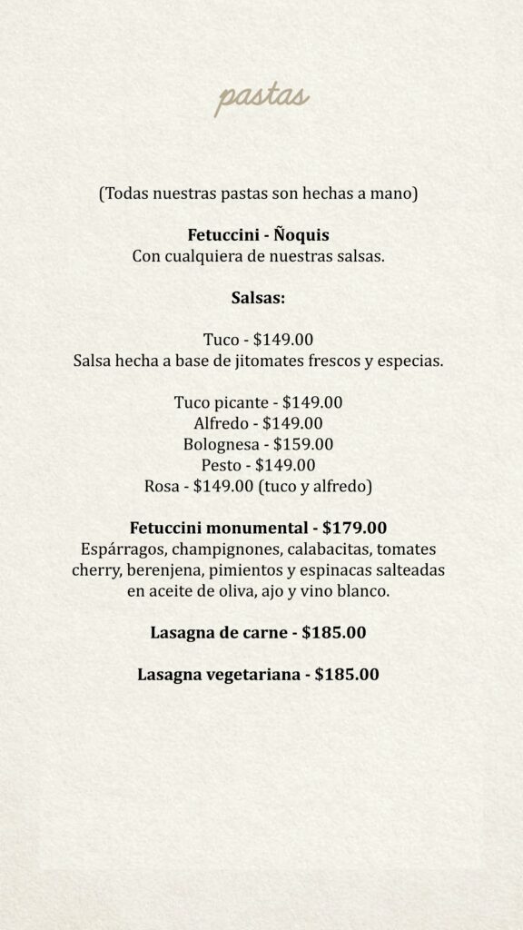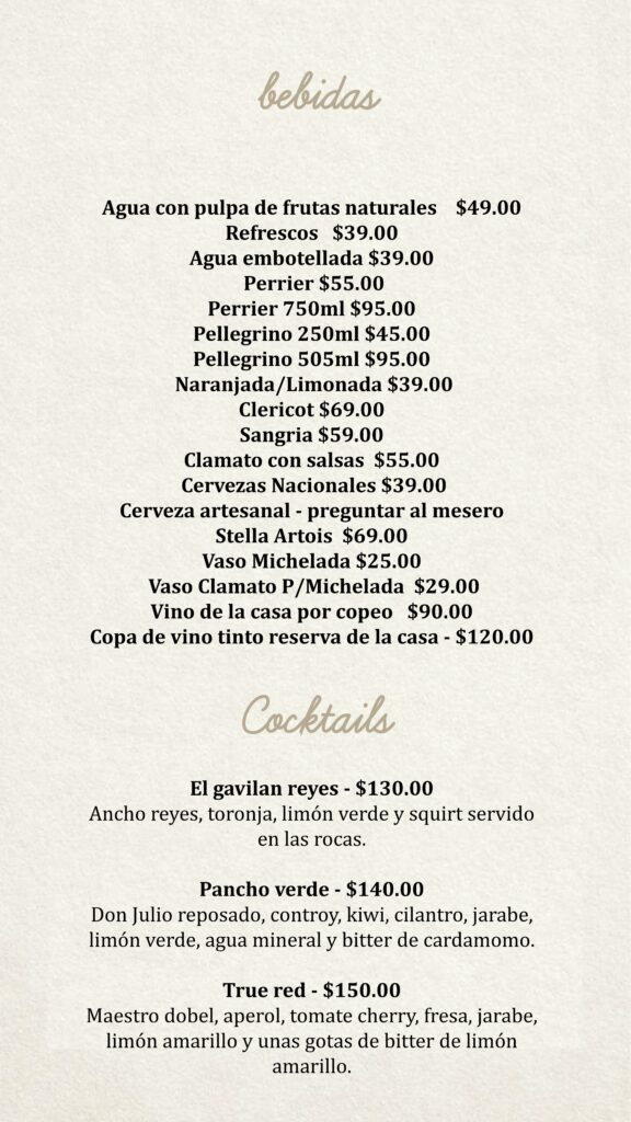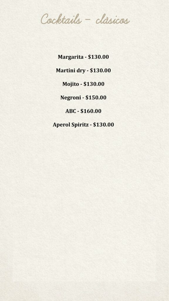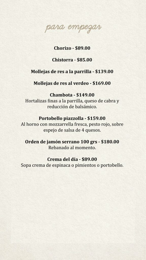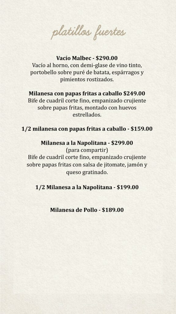 Menú Bendita Milanga CDMX