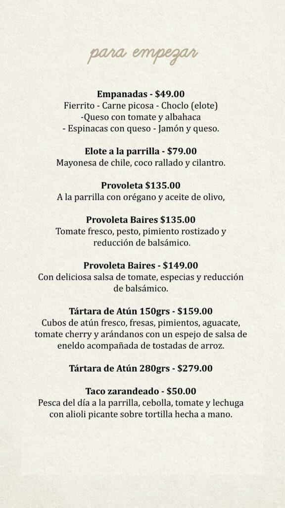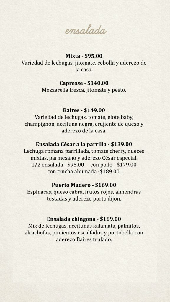 Menú Baires Santa Fe